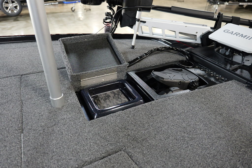 - Oversized lockable bow center storage locker w/TACKLE MANAGEMENT SYSTEM™