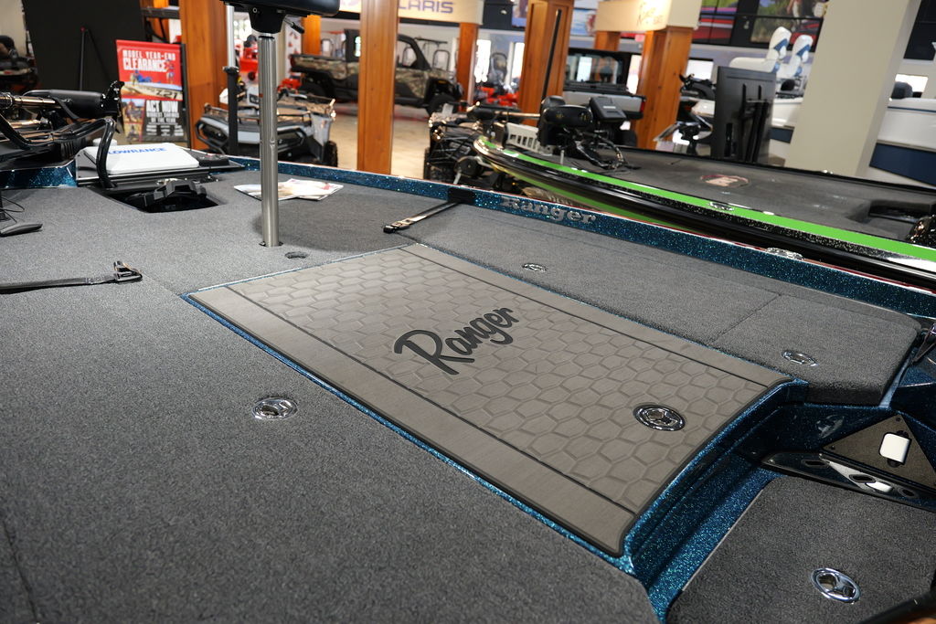 An all-new console carries dual graphs or a single 16” unit and the touchscreen Ranger R.I.D.E. system integrates total control over every boat and engine function. The all-new seats rest on easy-to-adjust slides and the color-matched fiberglass shellbacks take the aesthetic to a new level. A key fob and integrated push-to-start ignition let you start-up quicker and deliver greater security when you’re on the road. Inside the coin box is a wireless phone charger, and in the battery box are standard lithium batteries.
