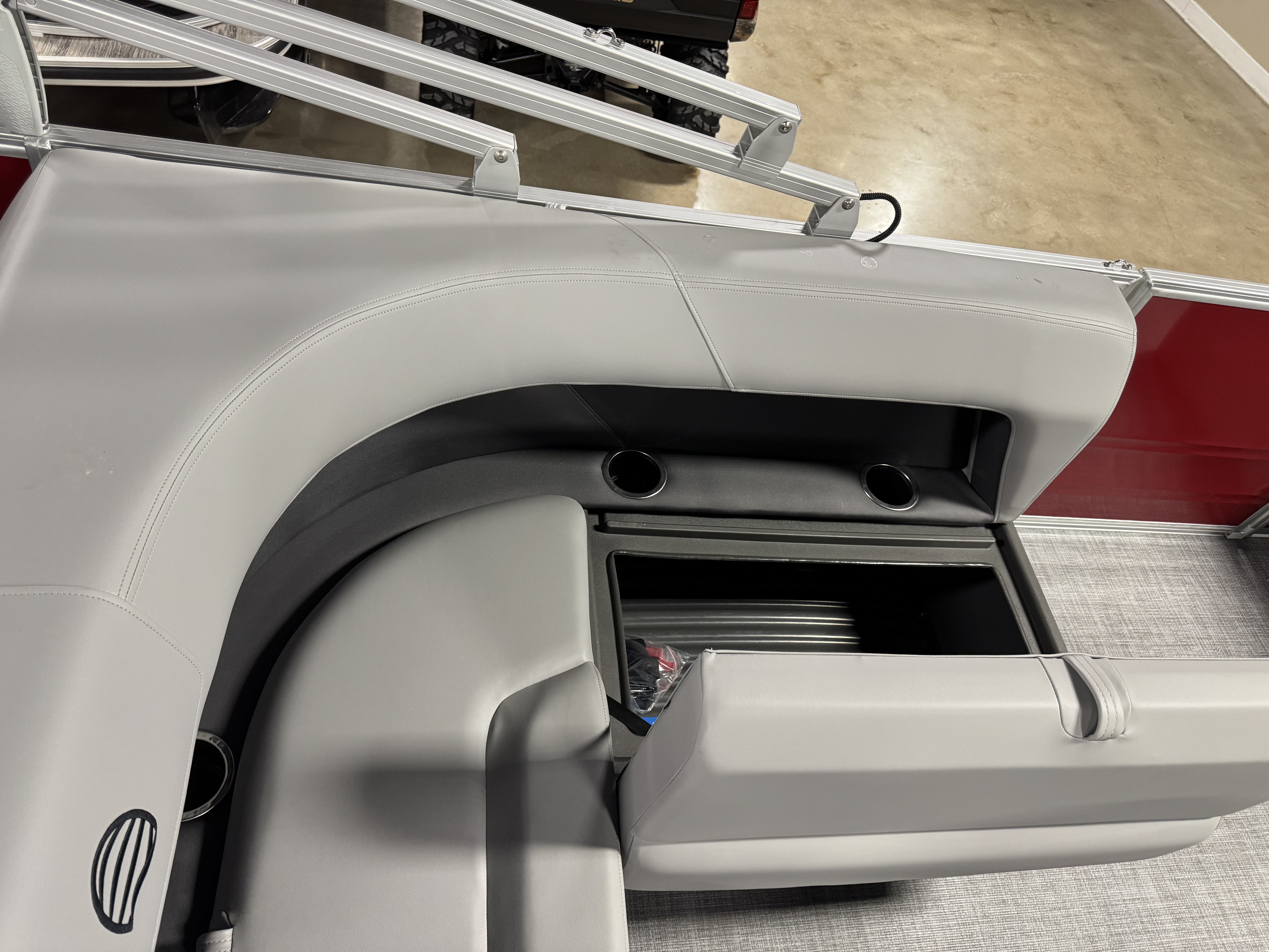 - Bow port couch w/underseat storage & armrest w/drink holder
