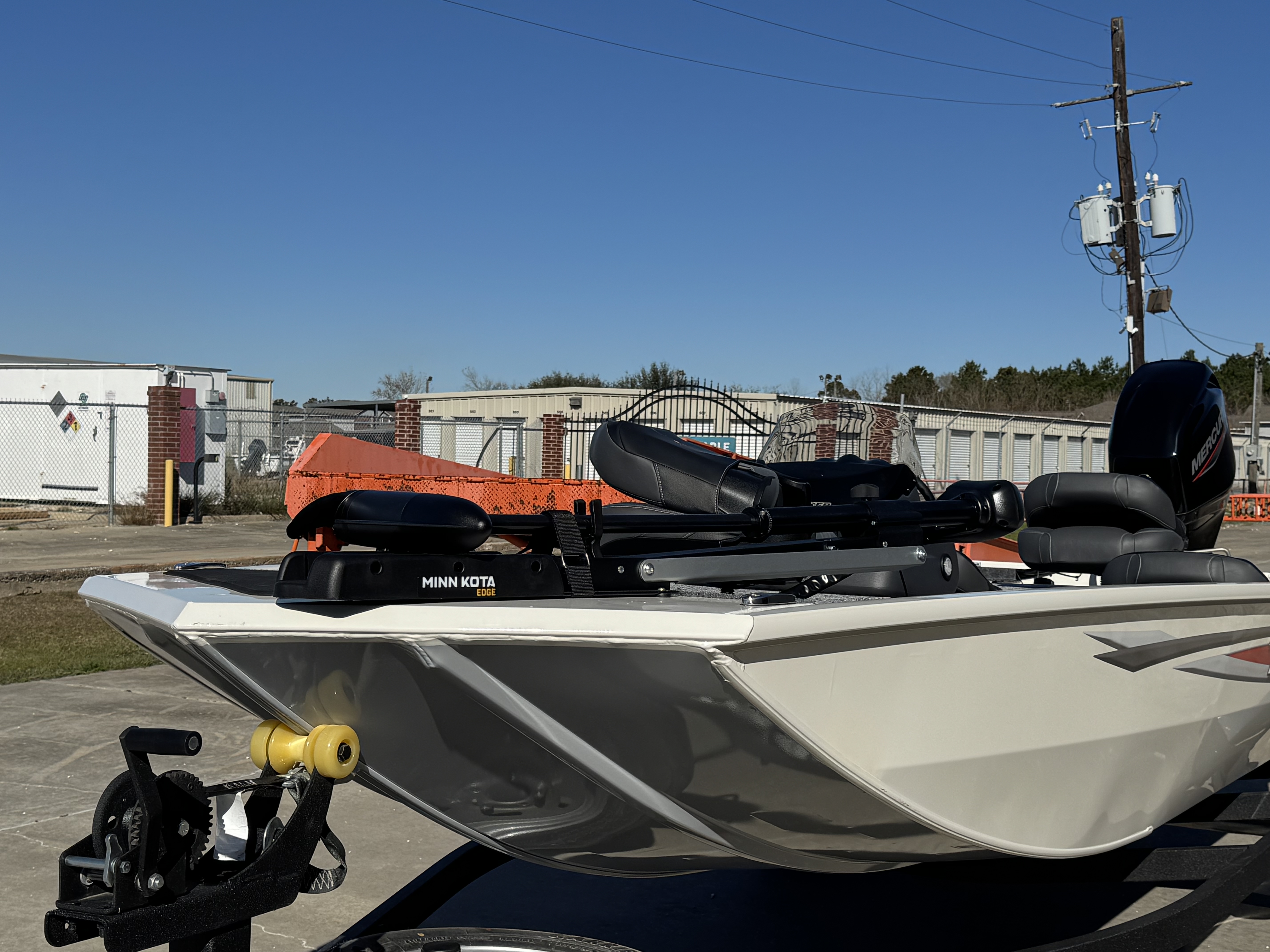 - Heavy-duty winch w/nylon strap & bow safety strap