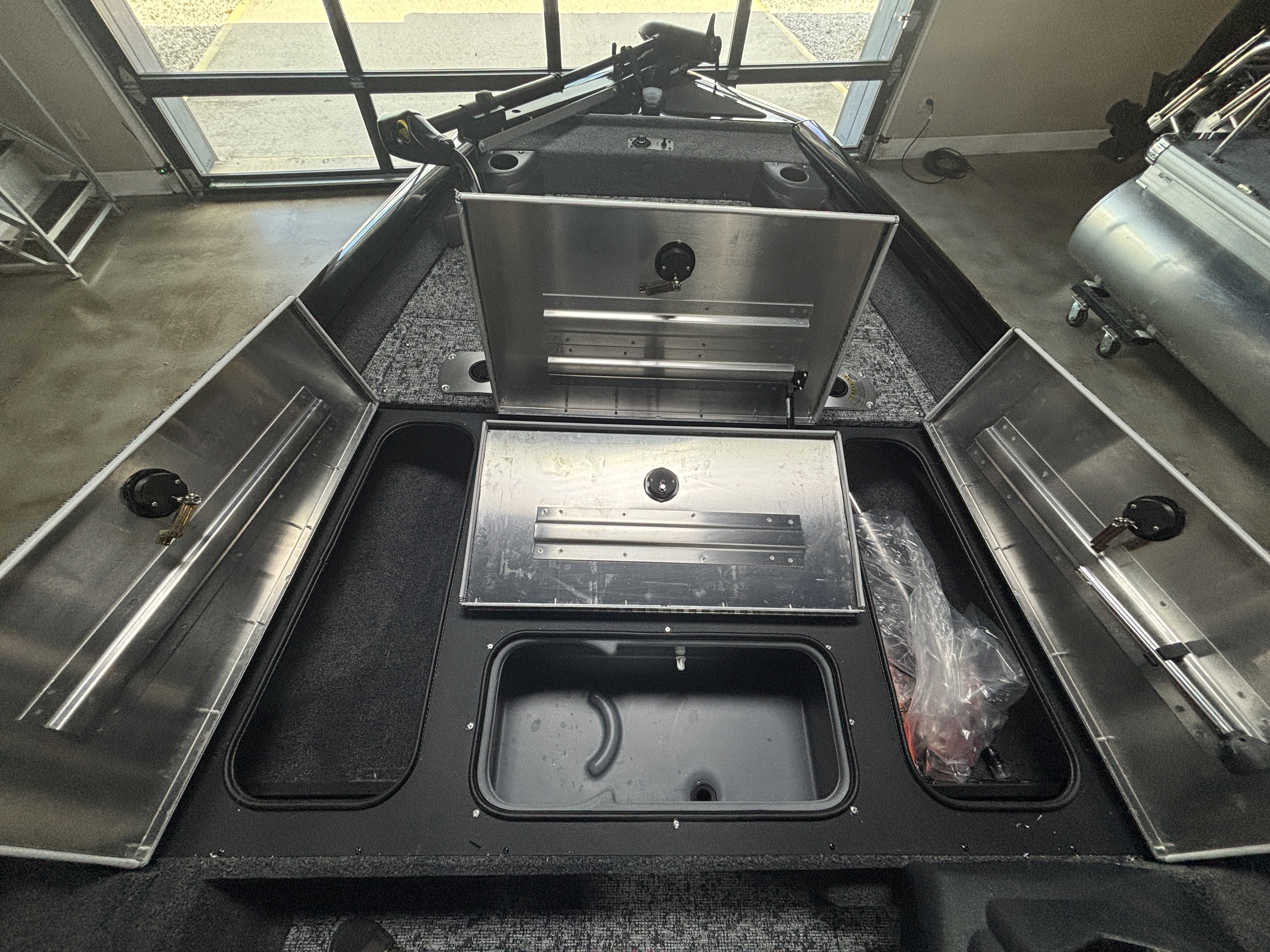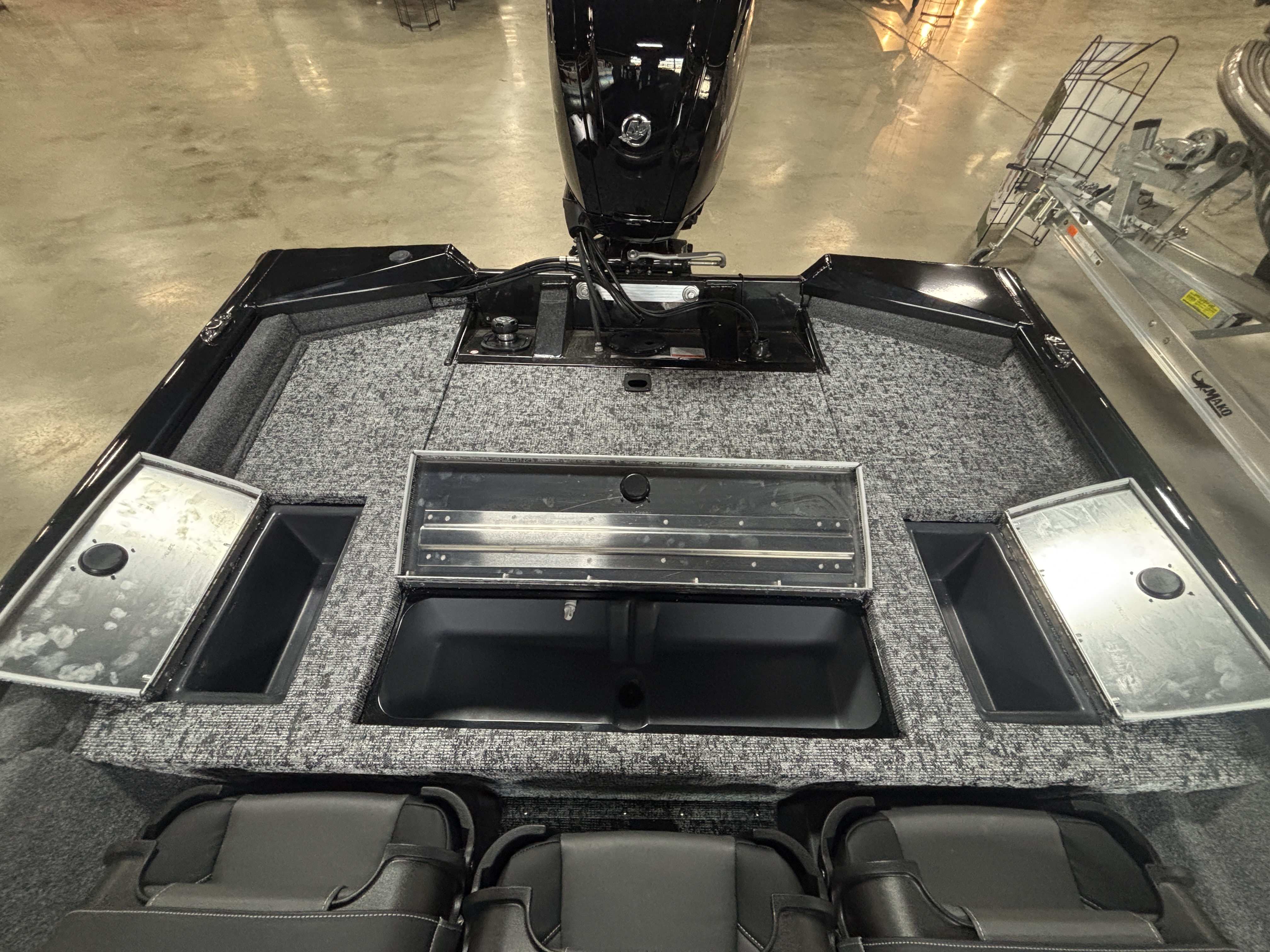 - Aft port & starboard molded storage boxes each hold three 3700 tackle boxes