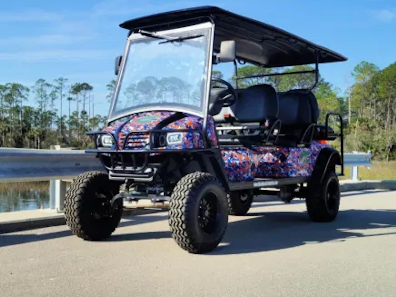 The MotoEV Electro Neighborhood Buddy 6 Seater (Back to Back) HighRiser Street Legal Electric Golf Cart - Whether you're running errands or just enjoying a leisurely ride around the neighborhood, our electric carts are the perfect choice. But it's not just about practicality; our street legal golf carts are also a ton of fun. Experience the open-air freedom and enjoy a quieter ride compared to traditional transportation options. Unlike standard golf carts, MotoEV electric vehicles are perfect for exploring low-speed communities, campuses, resort areas, and neighborhoods, as well as dedicated golf cart communities and town centers. Adding our state-of-the-art makes your vehicle an eco-friendly option that leaves a smaller carbon footprint compared to other forms of neighborhood transportation. You'll fly past the competition on public highways and community streets, all while abiding by the same rules that govern low-speed and neighborhood electric vehicles. With their open-air design, our lifted street-legal golf carts can handle passengers and larger loads with ease. Experience the joy of hassle-free transportation at MotoEV.