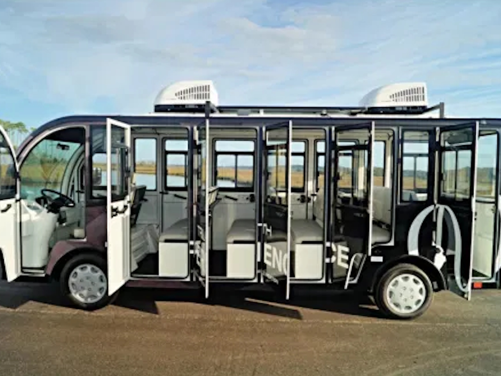 Our vehicles cost about one penny per mile traveled if you charge your vehicle overnight, when electric power is at its cheapest! Our built in on board chargers not only keep our batteries ready to go but contain a microprocessor so they will never overcharge. Once a full charge is detected, they simply turn themselves off! You will be able to "opportunity charge" your vehicle at anytime while on a break, shopping or simply at lunch because your charger will be contained right on the vehicle. Our MotoEV Transit Buddy are perfect for any shuttle application that requires use of a vehicle at speeds of 25 miles per hour or less in a clean, quiet, smooth “classy” environmentally friendly setting