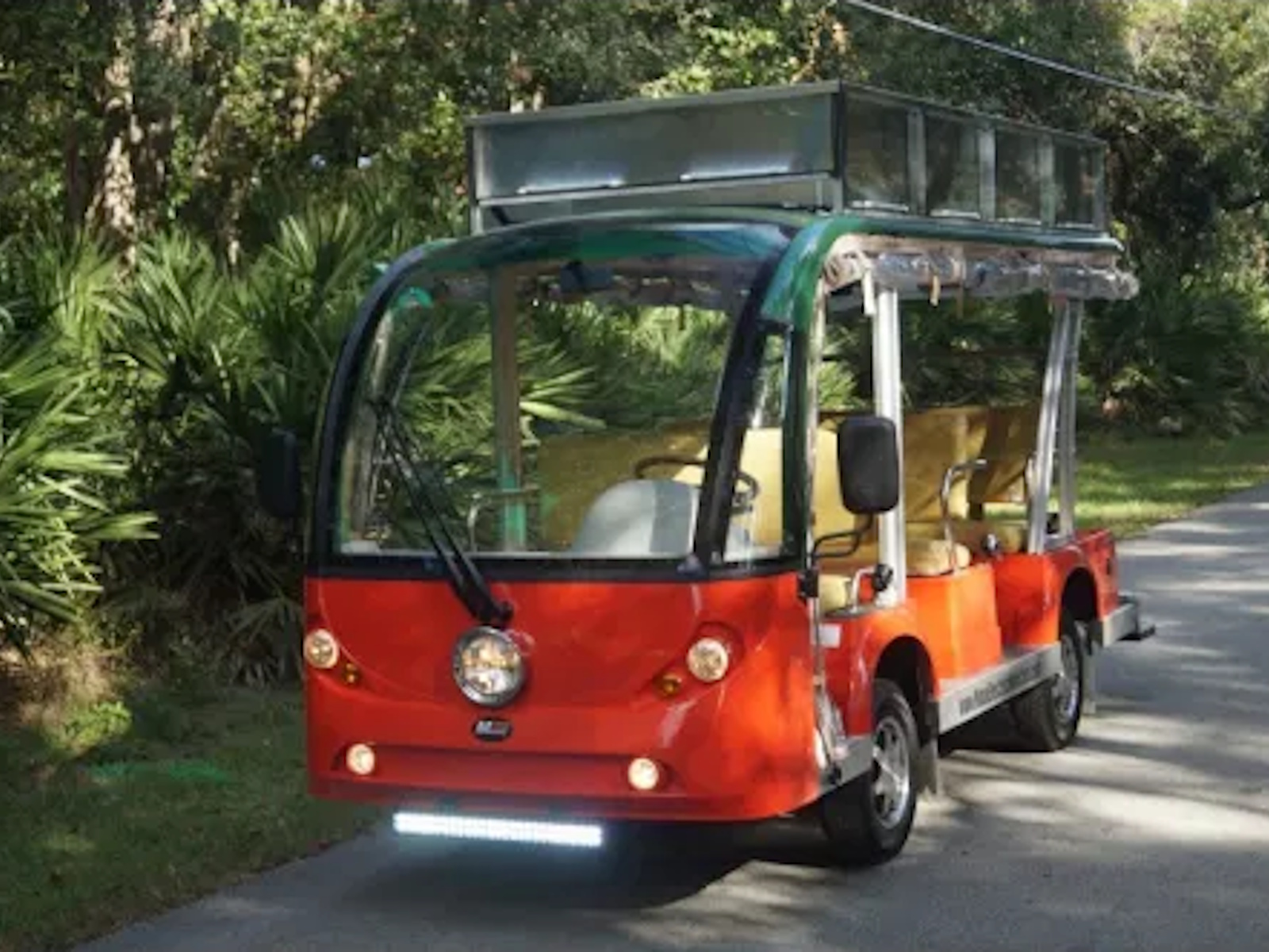 The MotoEV Transit Buddy line of vehicles are for those shuttle chores required around your Campus, Parking Lot, Town Center, Resort, or Facility. Some of these electric shuttles may hold up to 28 passengers when our tag along trailer is purchased! With this option, a second bank of batteries can be installed within the trailer to increase travel distances greatly! On your MotoEV 9-Passenger Electric Shuttle, we can add many options such as back up cameras, DVD Players, heaters, fans and even air conditioning when necessary! Smaller shuttles have a 48-volt system as a power source with a single battery charger. Our larger shuttles (12-28 Passenger Shuttles) contain two 48 volt systems for the longer range and quicker charging than a 72 volt “series” battery system. Our shuttles come standard with two chargers not one and each charger is responsible to charge only one bank of 48 volts of batteries. This decreases necessary charging time by half versus having one charger responsible for charging all batteries. Several models will qualify for the Low Speed Vehicle standards necessary to drive them on public roadways as well. Please consult a Moto Electric Salesperson for more specific details on this requirement.