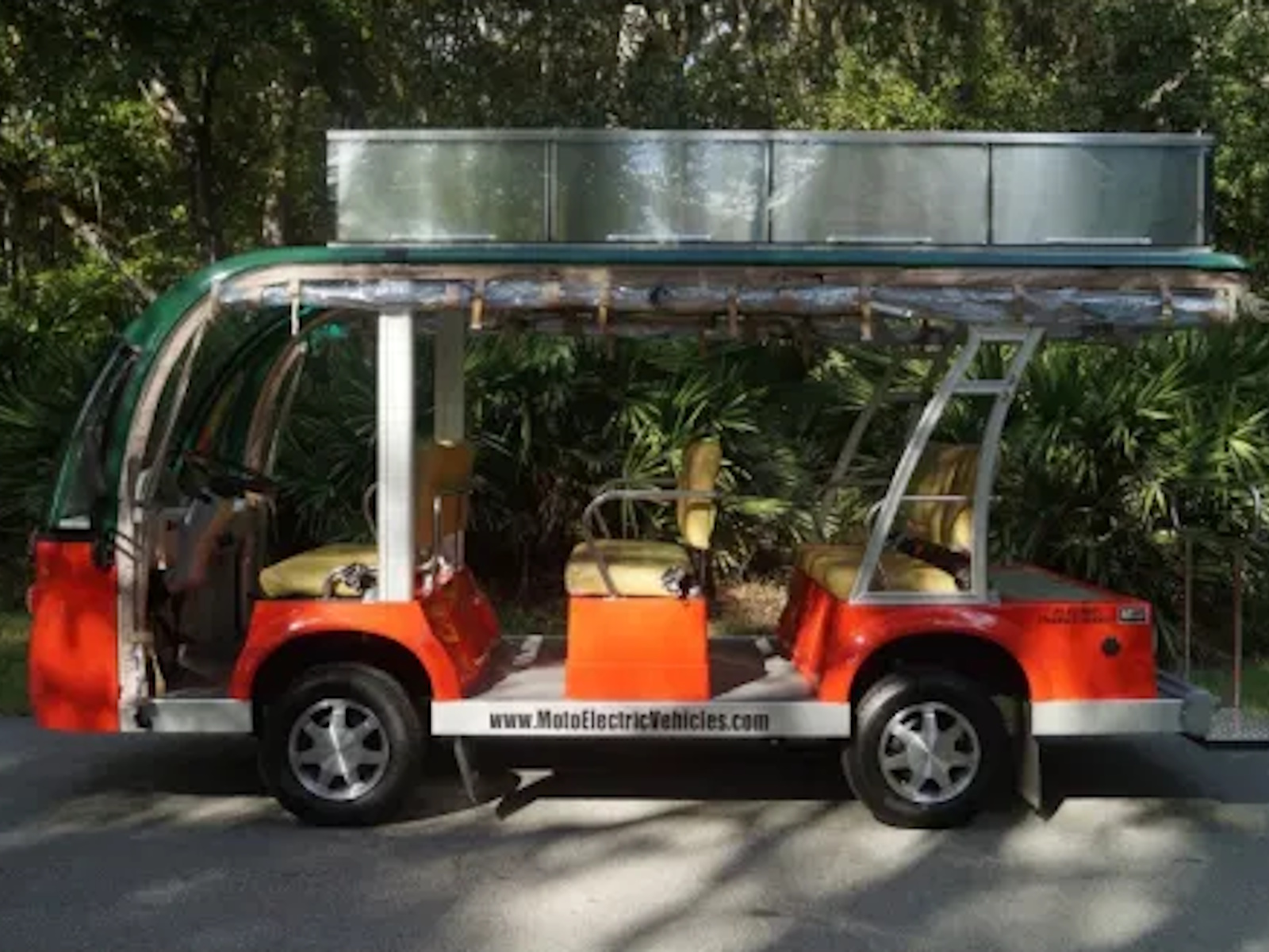This 9-passenger electric shuttle can travel an industry leading 50 miles per charge! It costs about one penny per mile traveled if you charge your vehicle overnight, when electric power is at its cheapest! Our built in on board chargers not only keep our batteries ready to go but contain a microprocessor so they will never overcharge. Once a full charge is detected, they simply turn themselves off! You will be able to "opportunity charge" your vehicle at anytime while on a break, shopping or simply at lunch because your charger will be contained right on the vehicle. Our MotoEV Transit Buddy is perfect for any shuttle application that requires use of a vehicle at speeds of 25 miles per hour or less in a clean, quiet, smooth “classy” environmentally friendly setting. Inquire about this electric transport vehicle today!