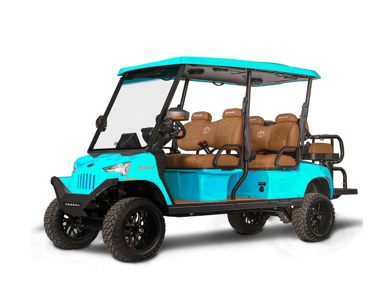 Ride in seaside elegance with the Engage Beachcomber, featuring CoolTouch Cognac seats, teak-style flooring, and coastal colors for a stylish journey, whether you're beach-bound or just dreaming of the shore.