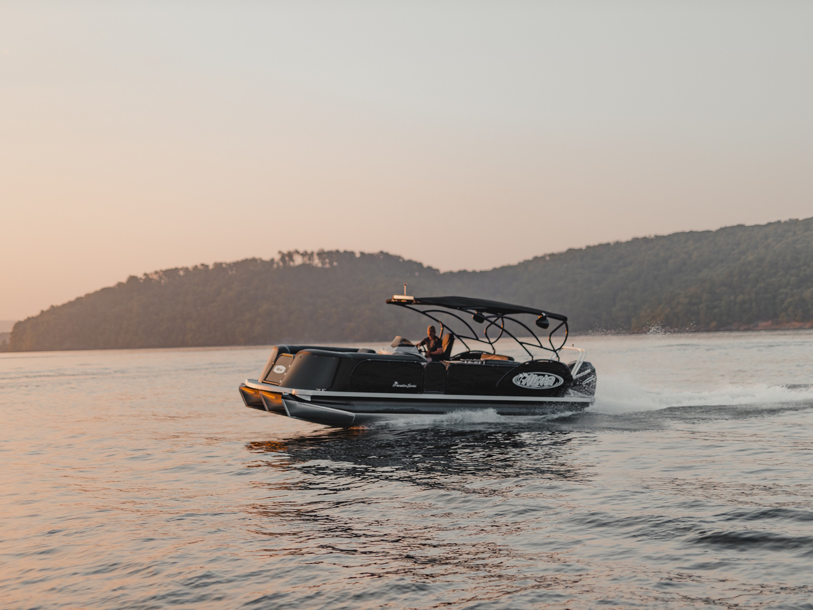 If your rush comes from catching some serious air on a wake board or watching your six-year old get up on skis for the very first time, then this model will satisfy your family’s need for speed and exhiliration. This 26′ foot long pontoon enables you to share paradise with your favorite first mate!