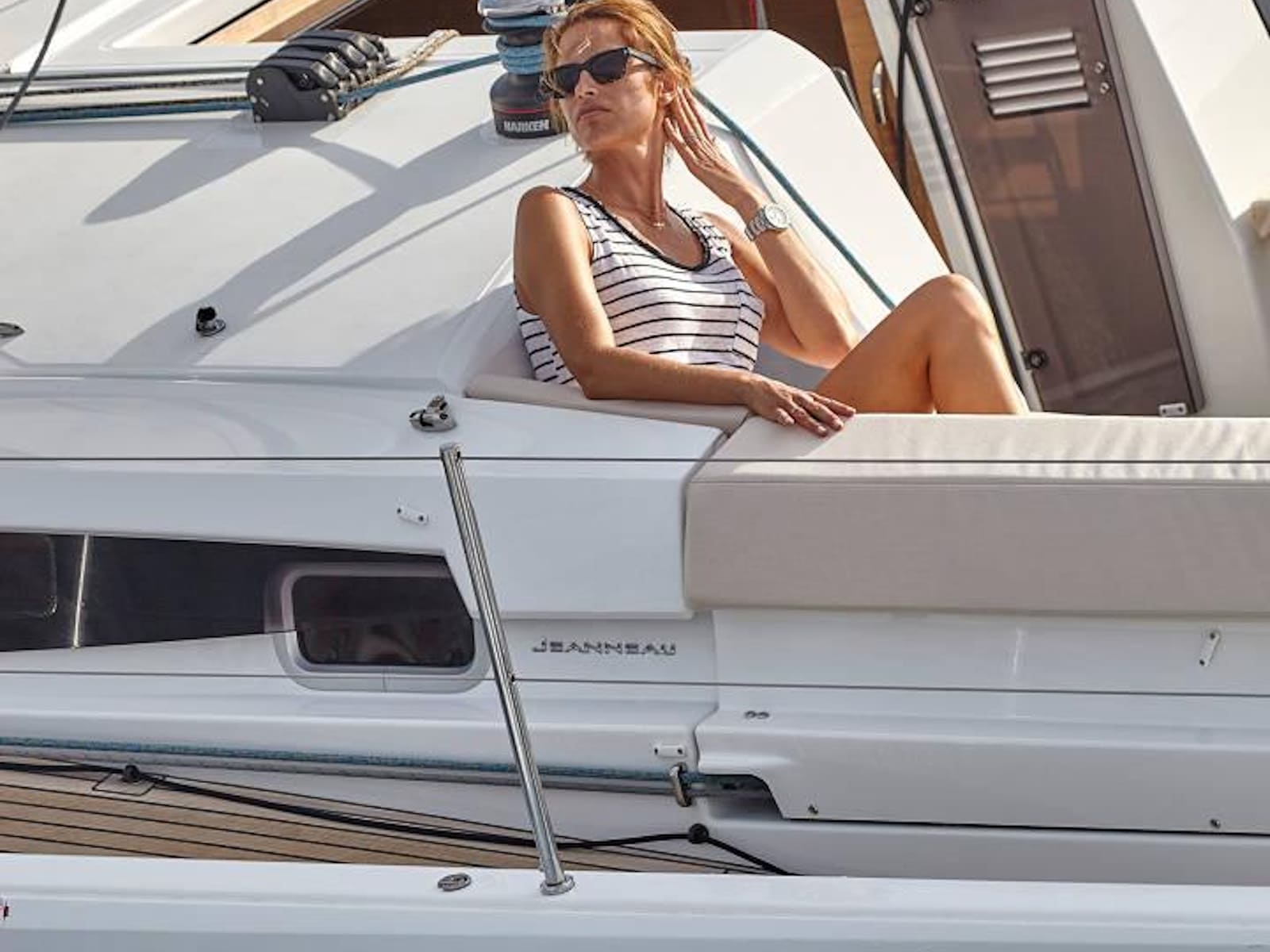 As with every Sun Odyssey, the cockpit ergonomics are second to none. Every sheet is cleverly led to the helm station, where the boat can be easily single or double-handed. The massive cockpit lounge is framed by the iconic walk-around decks, which make movement around the boat easier than ever before. However, the game-changer comes when the convertible coamings, the unfolding seat backs, are set up as beds. The entire aft eight feet of the boat transforms into a cushioned sunbathing deck!