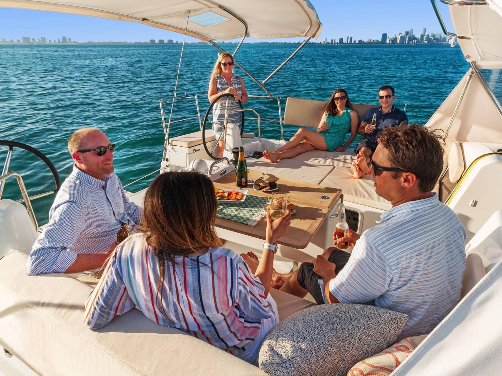 The open concept interior is bathed in light, as the main salon features many rows of windows and hatches. The central U-shaped galley is optimally placed for comfort while underway, as well as serving meals in the salon. In the 490, the nav station is particularly emphasized, as there is an aft-facing bench added to it, elevating this feature into a coffee nook or home office. However, it's the forward stateroom where this boat really sets itself apart. The square queen bed has plenty of space to walk around on all sides, and the large central armoire is perfect for mounting a television for viewing in bed. The gorgeous shower stall is placed on centerline, allowing for 6'6” headroom; a luxury usually only found on much larger boats.