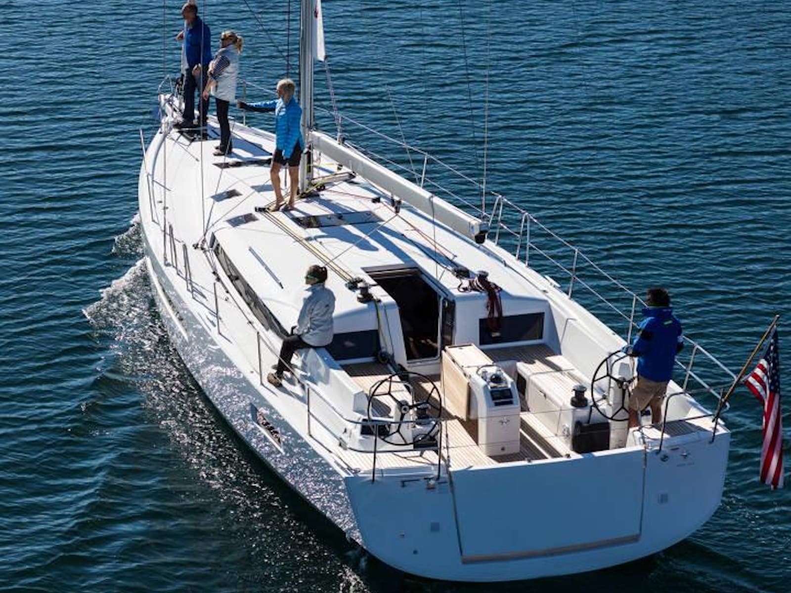 The open concept interior is bathed in light, as the main salon features many rows of windows and hatches. The central U-shaped galley is optimally placed for comfort while underway, as well as serving meals in the salon. In the 490, the nav station is particularly emphasized, as there is an aft-facing bench added to it, elevating this feature into a coffee nook or home office. However, it's the forward stateroom where this boat really sets itself apart. The square queen bed has plenty of space to walk around on all sides, and the large central armoire is perfect for mounting a television for viewing in bed. The gorgeous shower stall is placed on centerline, allowing for 6'6” headroom; a luxury usually only found on much larger boats.
