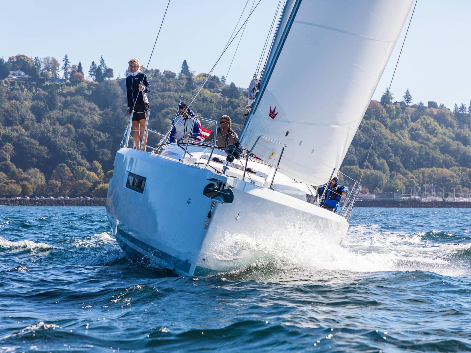 The open concept interior is bathed in light, as the main salon features many rows of windows and hatches. The central U-shaped galley is optimally placed for comfort while underway, as well as serving meals in the salon. In the 490, the nav station is particularly emphasized, as there is an aft-facing bench added to it, elevating this feature into a coffee nook or home office. However, it's the forward stateroom where this boat really sets itself apart. The square queen bed has plenty of space to walk around on all sides, and the large central armoire is perfect for mounting a television for viewing in bed. The gorgeous shower stall is placed on centerline, allowing for 6'6” headroom; a luxury usually only found on much larger boats.