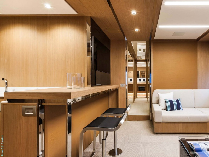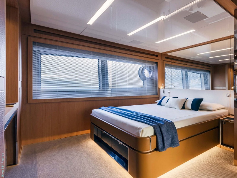 Her unmistakable style – the fruit of designer Mauro Micheli’s fertile imagination – combines to perfection with state-of-the-art nautical technology. Elegance, innovation and élan meet power and speed, all with the distinctive Riva hallmark – what more could you want in a yacht?